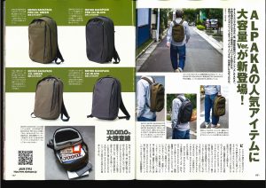 雑誌『monoマガジン』2024年12月16日情報号(2024年12月2日発売)に、ALPAKAのMETRO BACKPACK PROとMETRO BACKPACKが掲載されました。『monoマガジン』は、モノ情報誌のパイオニアです。
