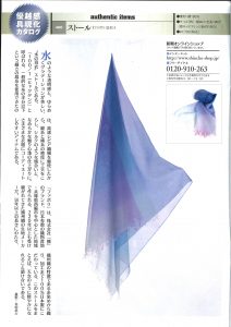 雑誌『週刊新潮』2020年4月30日号(2020年4月23日発売)の、連載「優越感具現化カタログ」で、fabori日本製水彩のグラデーションストールが掲載されました。世界中から選りすぐった逸品を紹介する連載で、「水のような透明感と、ゆらめくグラデーションが美しい“水の羽衣”ストール」として紹介されています。『週刊新潮』は、1956年(昭和31年)2月に、出版社が出す初めての週刊誌として創刊された、高い人気を誇る総合情報誌です。