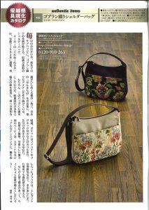 雑誌『週刊新潮』2021年1月21日号(2021年1月14日発売)の、連載「優越感具現化カタログ」で、くれあーれきき日本製ゴブラン織りショルダーバッグが掲載されました。世界中から選りすぐった逸品を紹介する連載で、「毎日のお出かけや、旅先でのサブバッグに。ゴブラン織りの花柄が映える、収納力抜群のショルダーバッグ」として紹介されています。『週刊新潮』は、1956年(昭和31年)2月に、出版社が出す初めての週刊誌として創刊された、高い人気を誇る総合情報誌です。